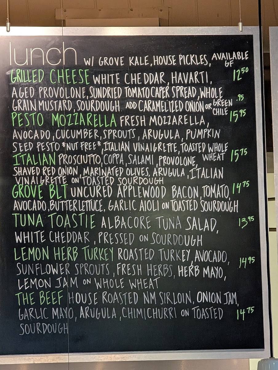 The Grove Cafe & Market, located in Albuquerque, NM, is a must-visit culinary destination that offers a delightful menu catering to diverse tastes. Their sandwiches shine, featuring creations like the Grove BLT with uncured bacon and garlic mayo, and the Italian with genoa salami and marinated olives, each priced around $15.95. The lemon herb turkey, combined with avocado and fresh herbs, is a fan favorite, showcasing their commitment to quality ingredients.